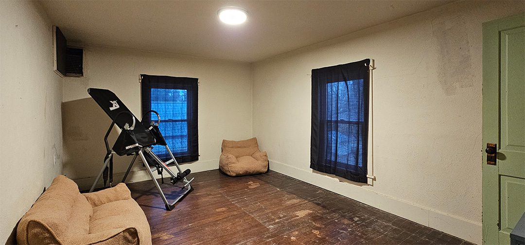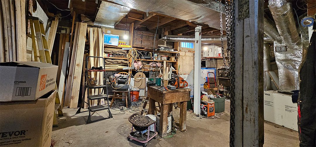 The front living room features a fireplace, currently electric, with plans for conversion to natural gas. The basement offers tall ceilings and excellent potential for additional finished living space.